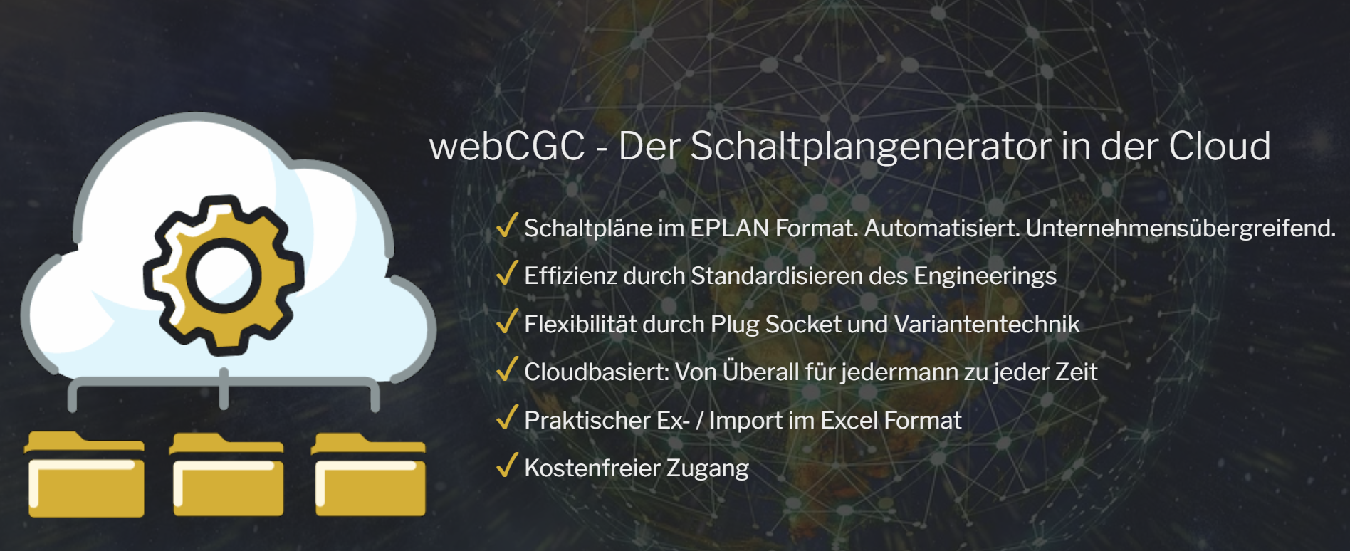 Der Schaltplangenerator in der Cloud - Reduzieren Sie  Ihre Kosten, steigern Sie die Qualität, realisieren Sie verkürzte Engineering Zeiten und bauen Sie sich mit CGC web eine nachhaltige Lösung auf.